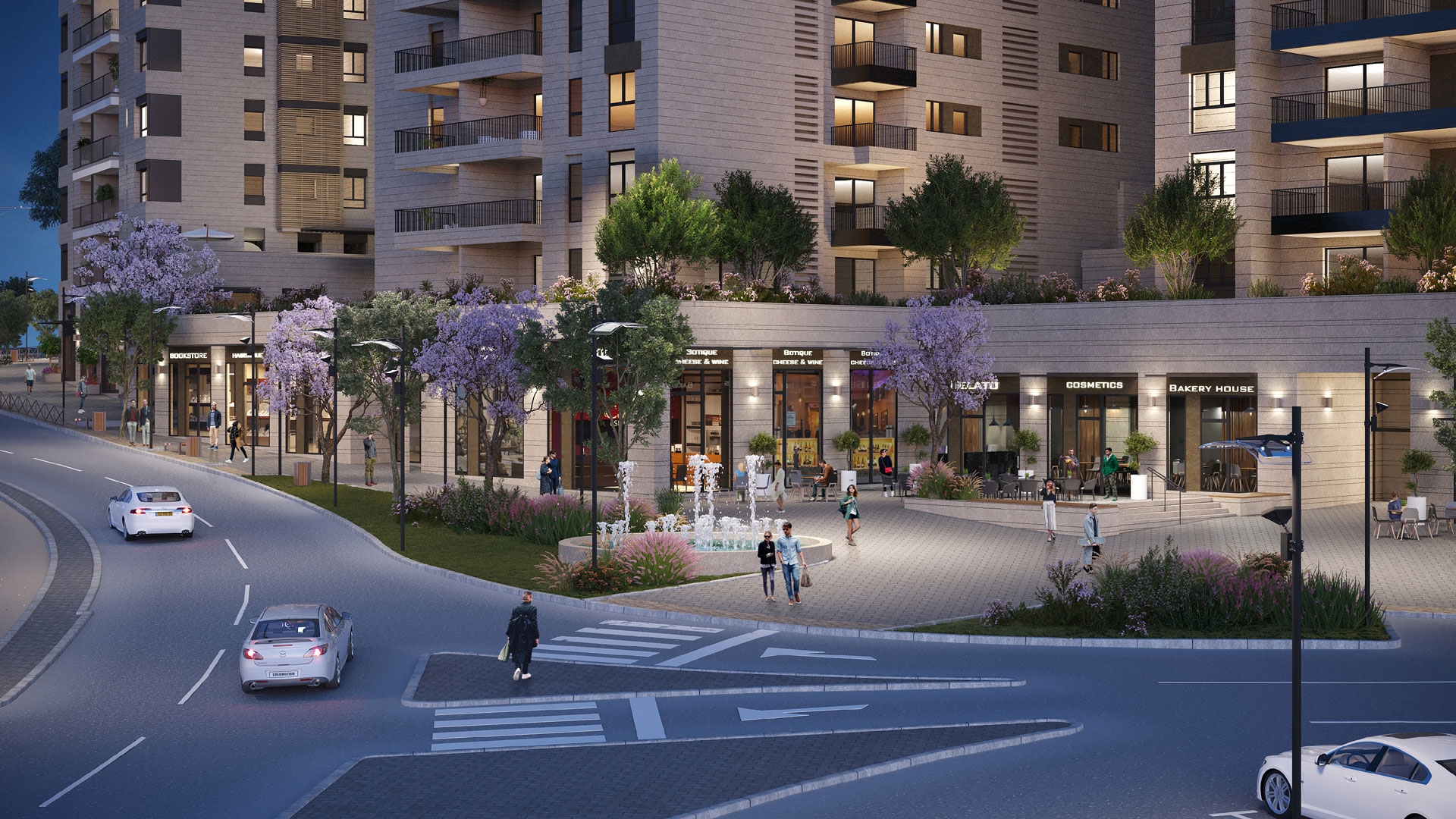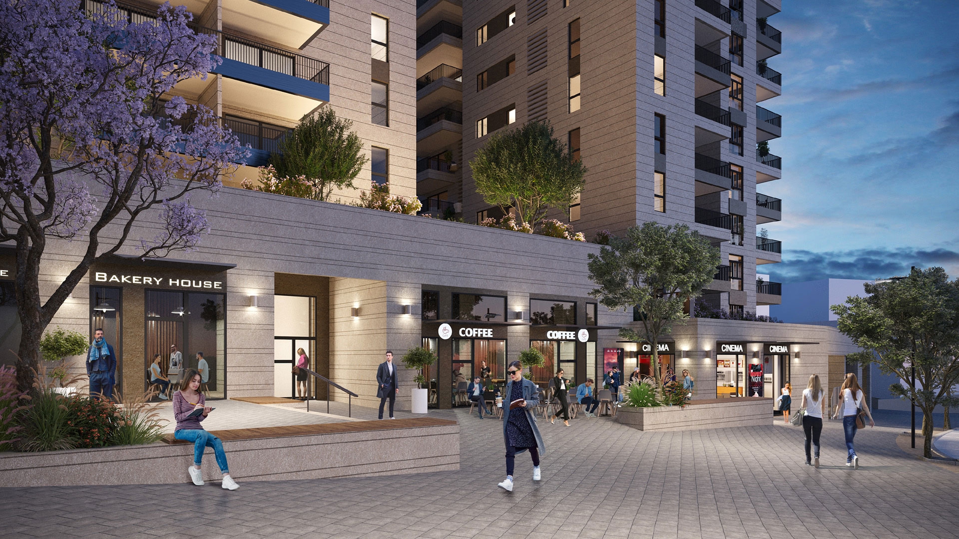 בצידי השדרה המוריקה ייבנו מגדלי מגורים יוקרתיים ובליבה מתחם פנאי, בילוי ושופינג הכולל בתי קפה, מעדניות וחנויות בוטיק.